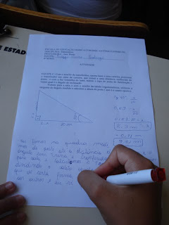 Alunos da professora Jane colocando em prática as relações trigonométricas do triângulo retângulo.